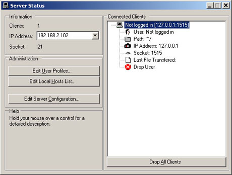 While running, you can monitor the clients using the server in real-time. If necessary, it is even
