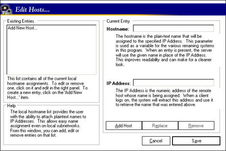To ease administration tasks, the server allows you to assign proper names to the IP Addresses of the